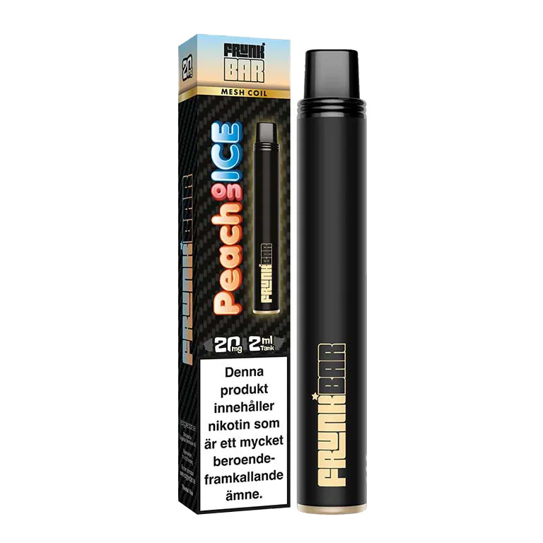 Frunk Bar Mesh Peach On Ice är en engångsvape avsedd för användning utan påfyllning eller laddning. Produkten innehåller en e-vätska med smak av persika och cooling. Enheten är förfylld med nikotinsaltbaserad vätska, vilket möjliggör effektivt nikotinupptag och en jämn ångproduktion under användning. Frunk Bar används tills e-vätskan eller batteriet är förbrukat.