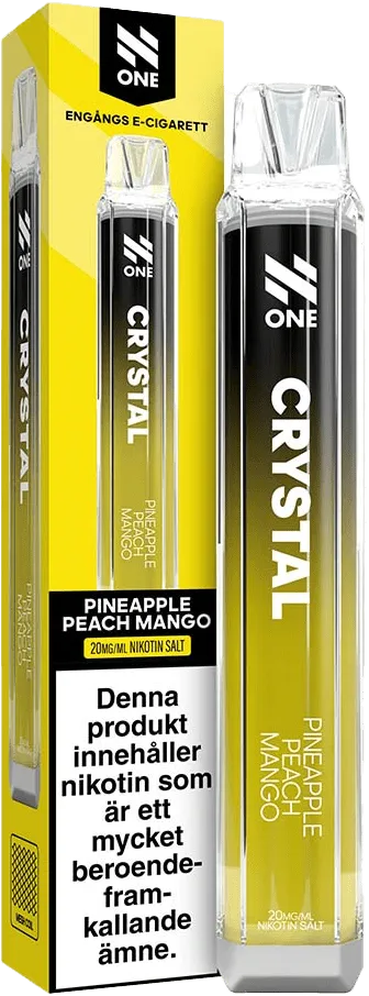 N One Crystal Mesh Pineapple Peach Mango är en engångsvape avsedd för användning utan påfyllning eller laddning. Produkten innehåller en nikotinsaltbaserad e-vätska med smak av ananas, persika och mango, vilket ger en söt och tropisk smakprofil. Enheten är utrustad med mesh-coil, vilket bidrar till ett effektivt nikotinupptag och en jämn ångproduktion under användning. N One Crystal används tills e-vätskan eller batteriet är förbrukat.