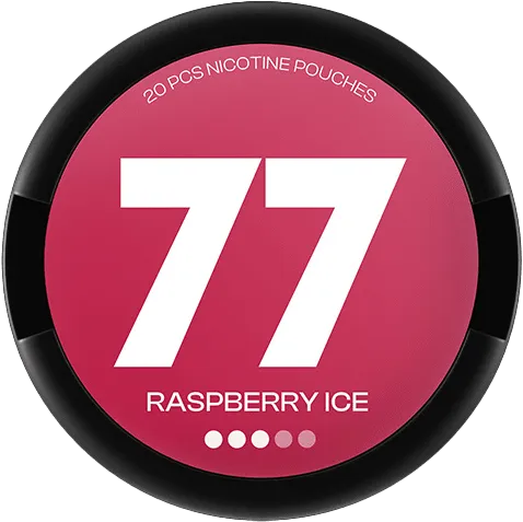 77 Nicotine Pouches Raspberry Ice är en tobaksfri nikotinportion i slim-format från varumärket 77 Nicotine Pouches. Produkten tillverkas av Luna Corporate och innehåller nikotin men ingen tobak. Prillorna är helvita och baserade på växtfibrer med torr utsida och fuktigt innehåll, vilket bidrar till en jämn frisättning av smak och nikotin. Varje dosa innehåller 20 portioner.