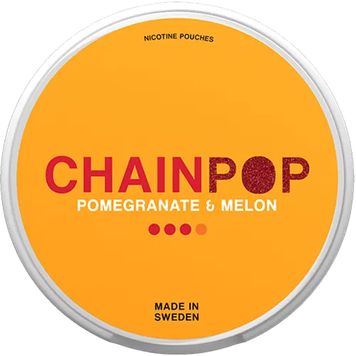 Chainpop är ett varumärke som fokuserar på lekfulla smakkombinationer, stilren design och tobaksfria nikotinportioner i diskret format. Pomegranate & Melon är ett exempel på varumärkets fruktiga och lättillgängliga profil.