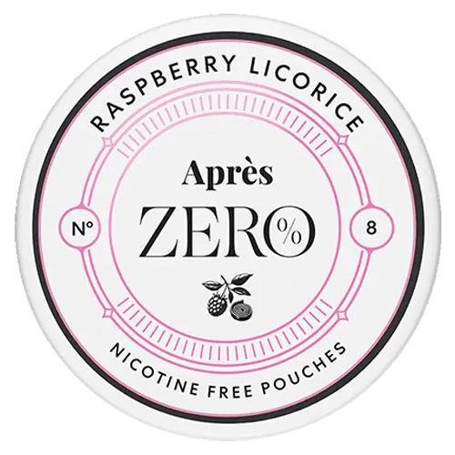 Après No.8 Raspberry Licorice Zero är ett tobaksfritt vitt snus utan nikotin med en tydlig och kontrasterande smakprofil. Här möts söt och syrlig hallon med djup lakrits, vilket skapar en balanserad kombination av fruktighet och fyllighet.