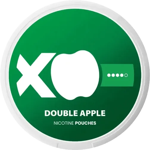 XO Double Apple är en tobaksfri nikotinportion i slim-format med smak av rött och grön äpple. Det har en kylande underton och en nikotinhalt på 16 mg per gram, vilket motsvarar 8 mg nikotin per portion. Varje portion väger 0,5 gram och en dosa innehåller totalt 20 portioner med en totalvikt på 10 gram. Snuset är i all white-format.